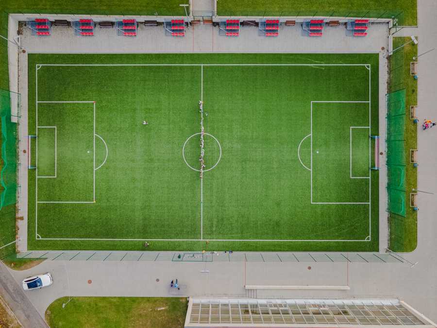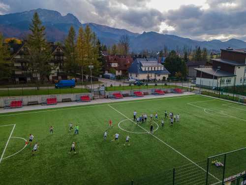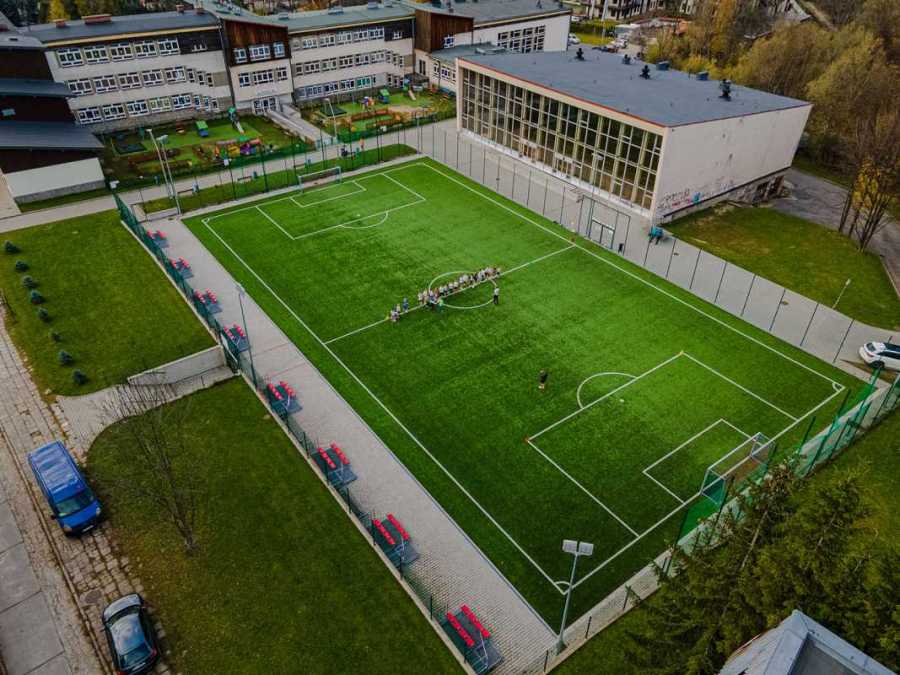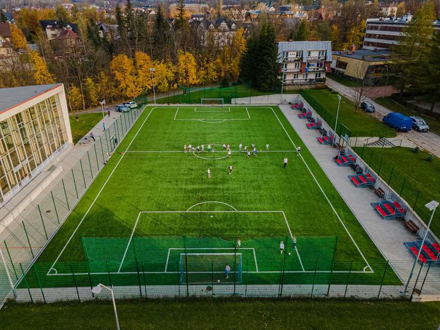 Nasze boisko posiada sztuczną nawierzchnię oraz niewielką widownię.